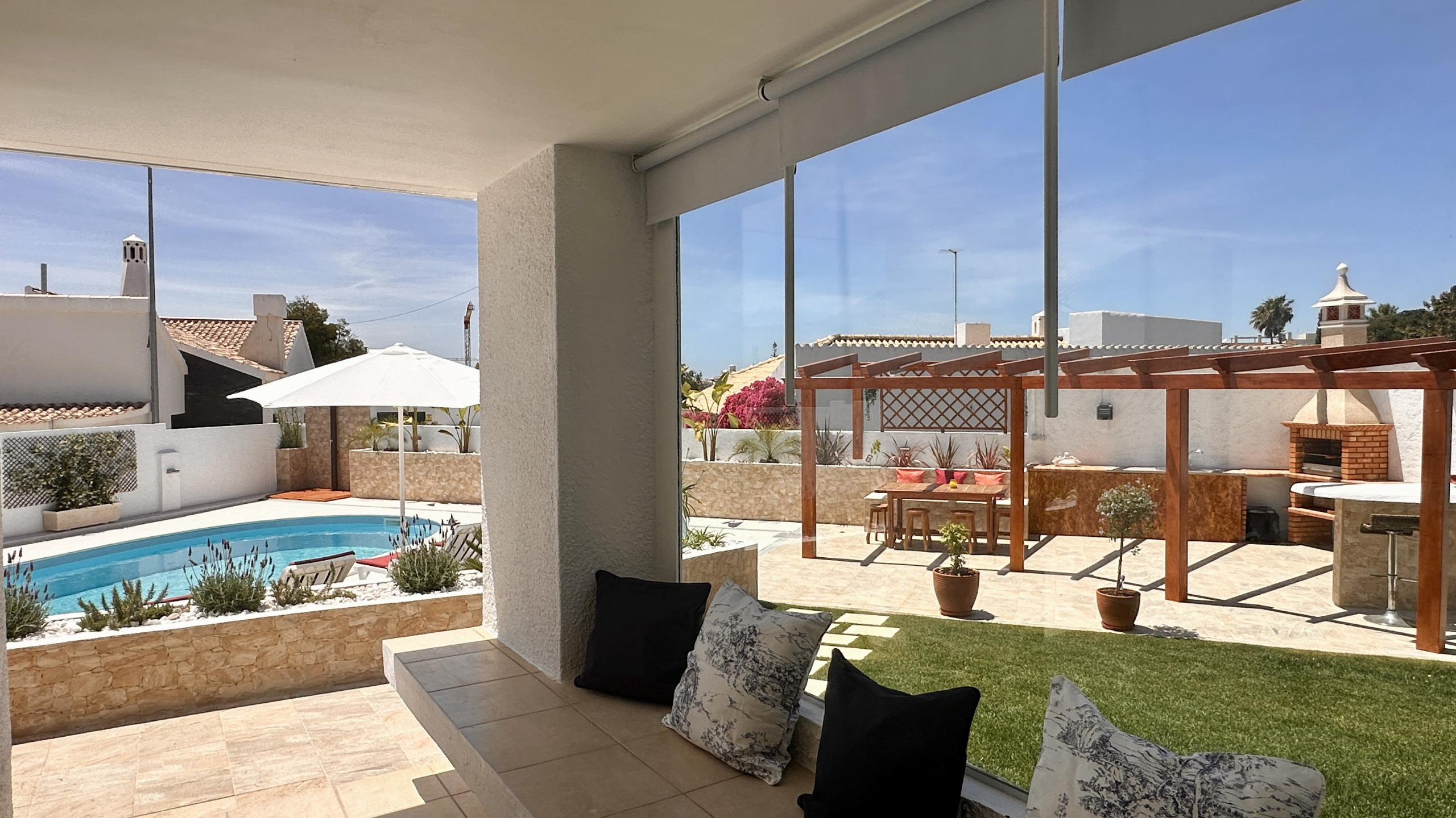 • Heller und geräumiger Wohnbereich mit Essbereich und direktem Zugang zum Pool
