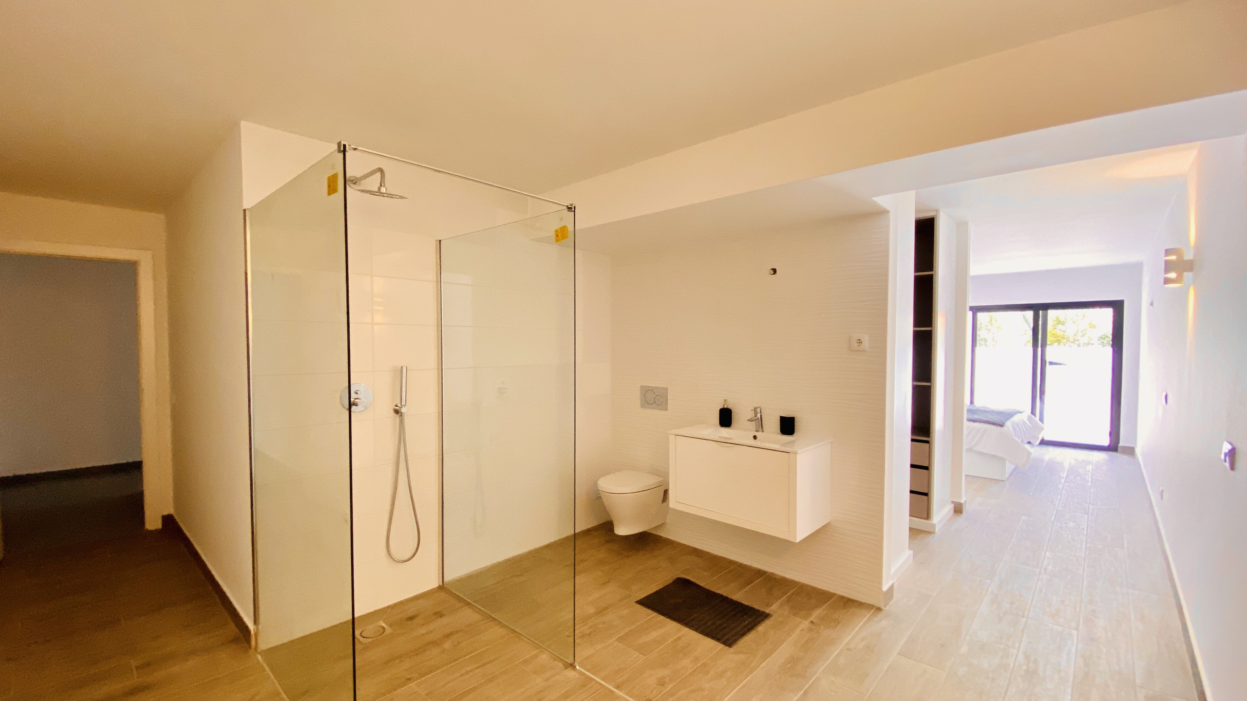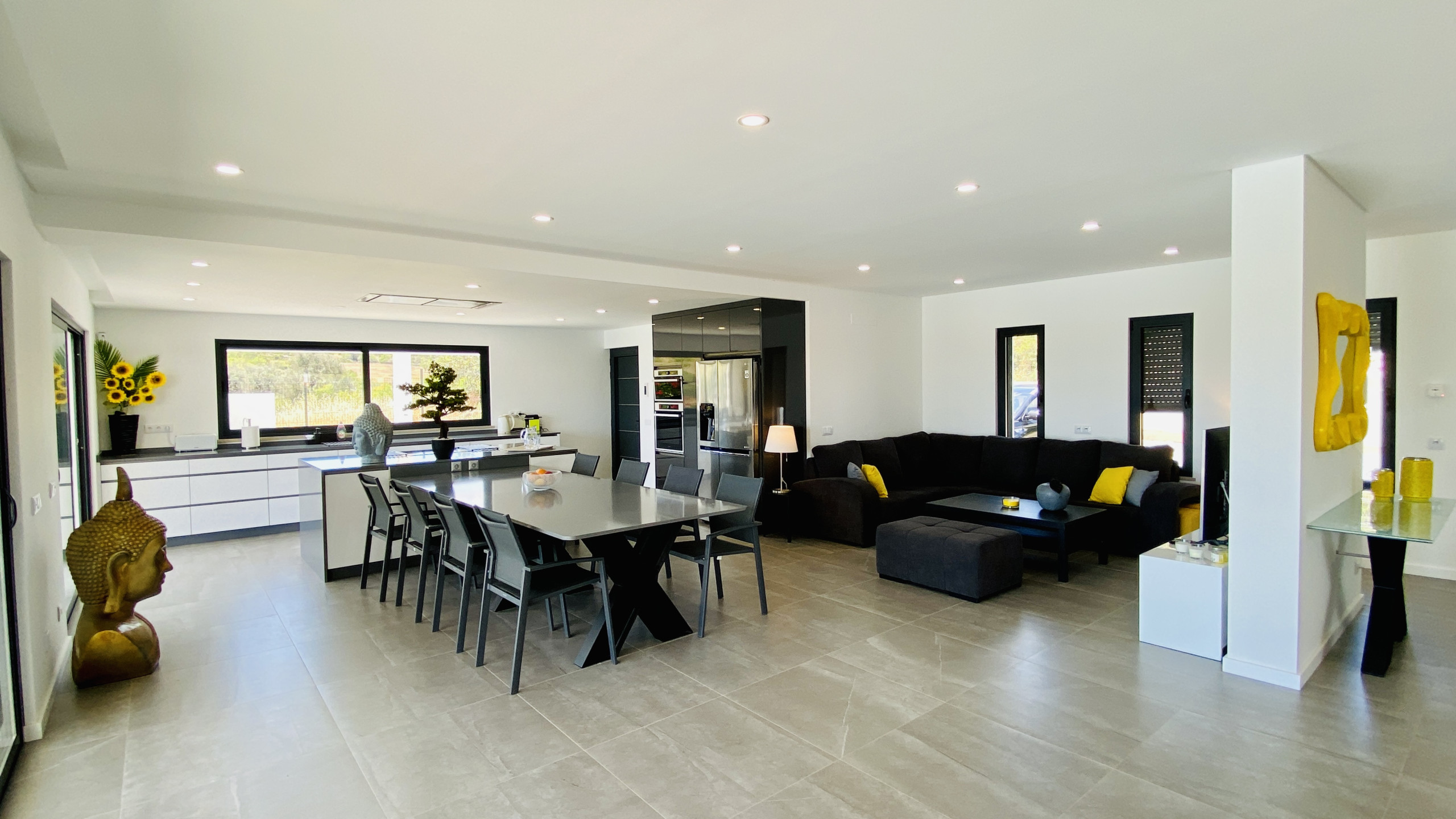 RAUM: Geräumiges Wohnzimmer mit Zugang zum Swimmingpool, WLAN-Internetzugang, Klimaanlage und Wärmepumpenheizung.