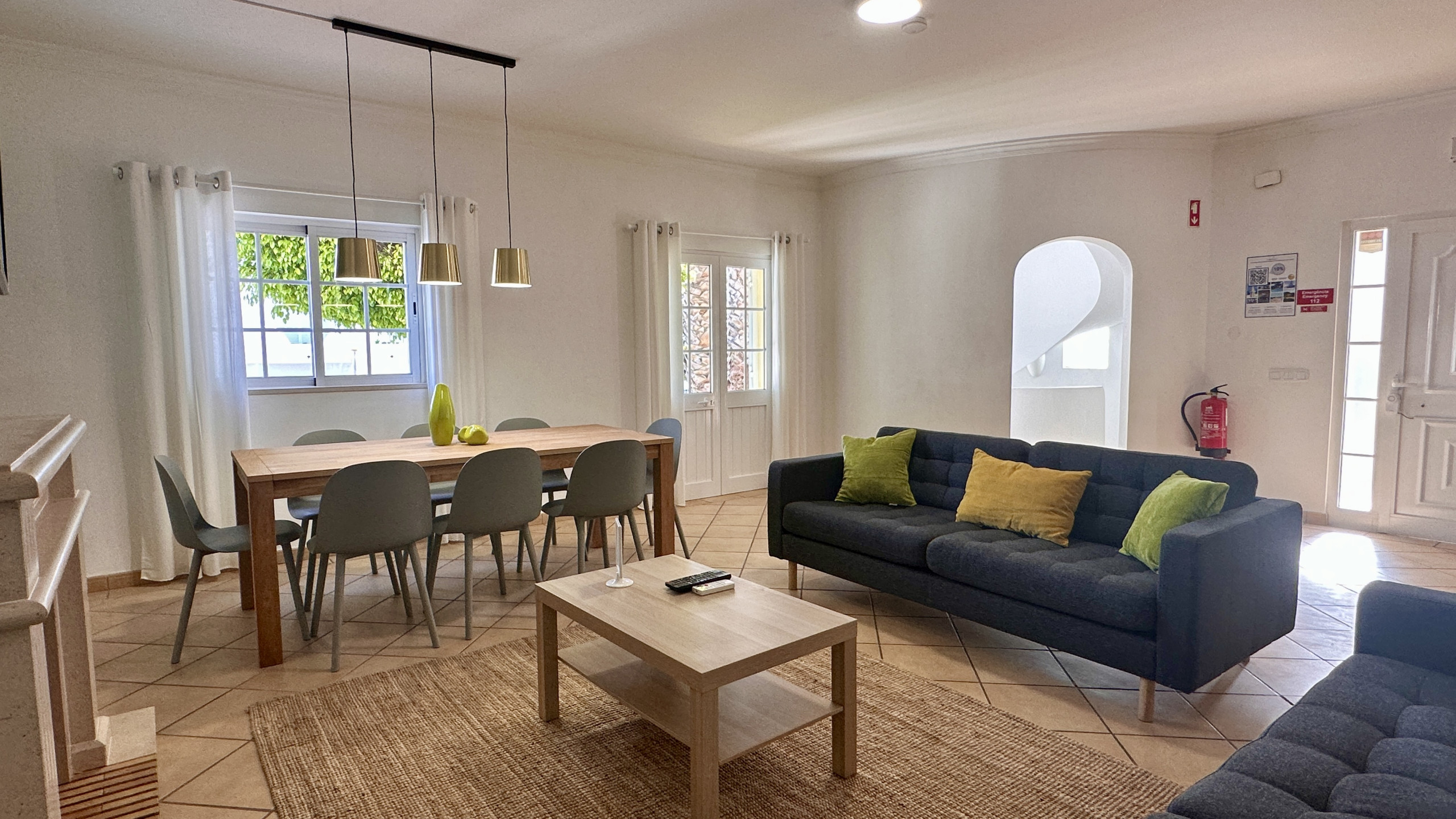 • Salon spacieux et lumineux, avec zone de repas et accès direct à la piscine