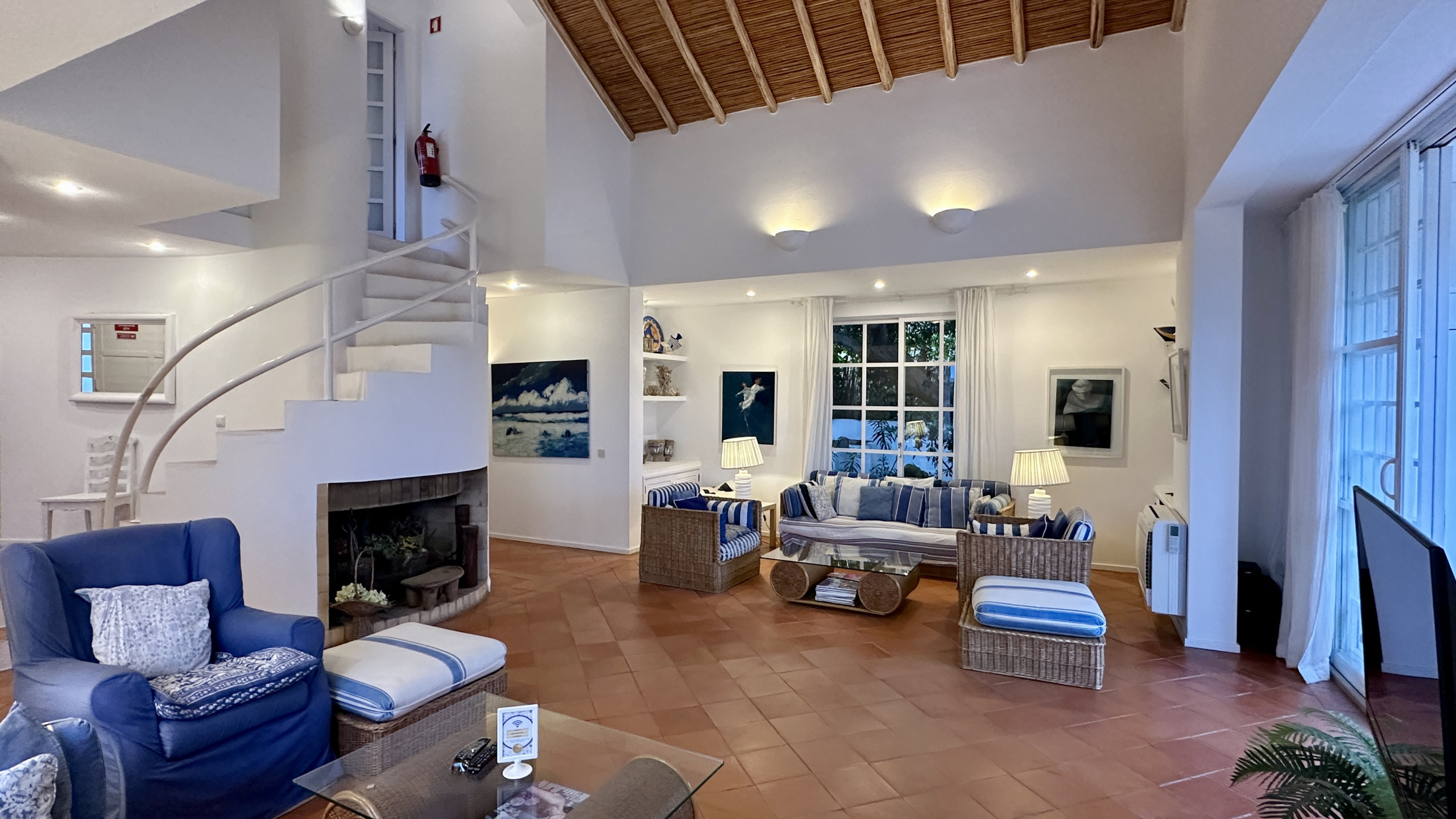 • Sala de estar espaçosa e luminosa com lareira e zona de refeições