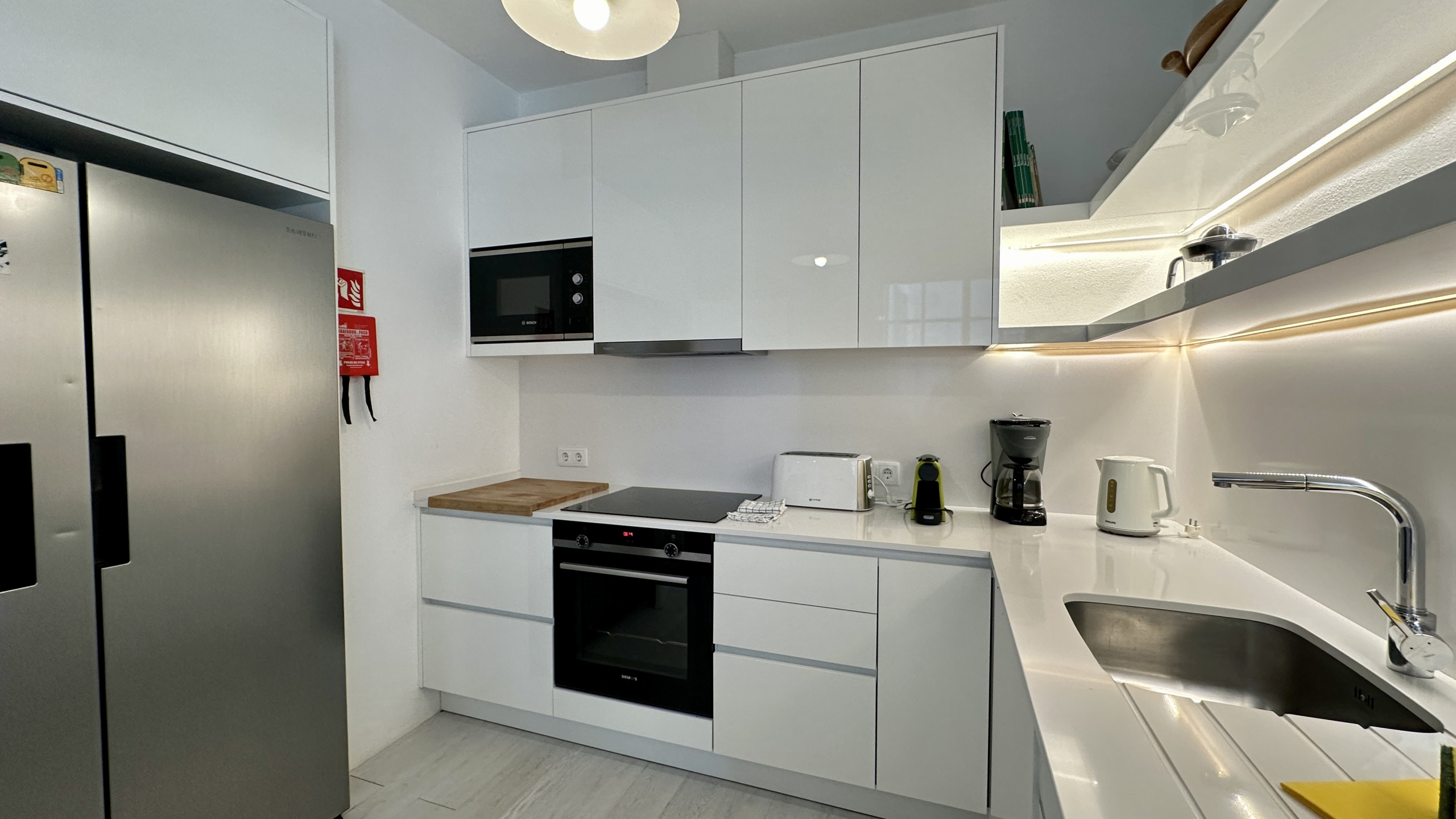 • Cozinha totalmente equipada: frigorífico, forno, fogão, micro-ondas, máquina de lavar loiça, máquina de lavar roupa e todos os utensílios essenciais