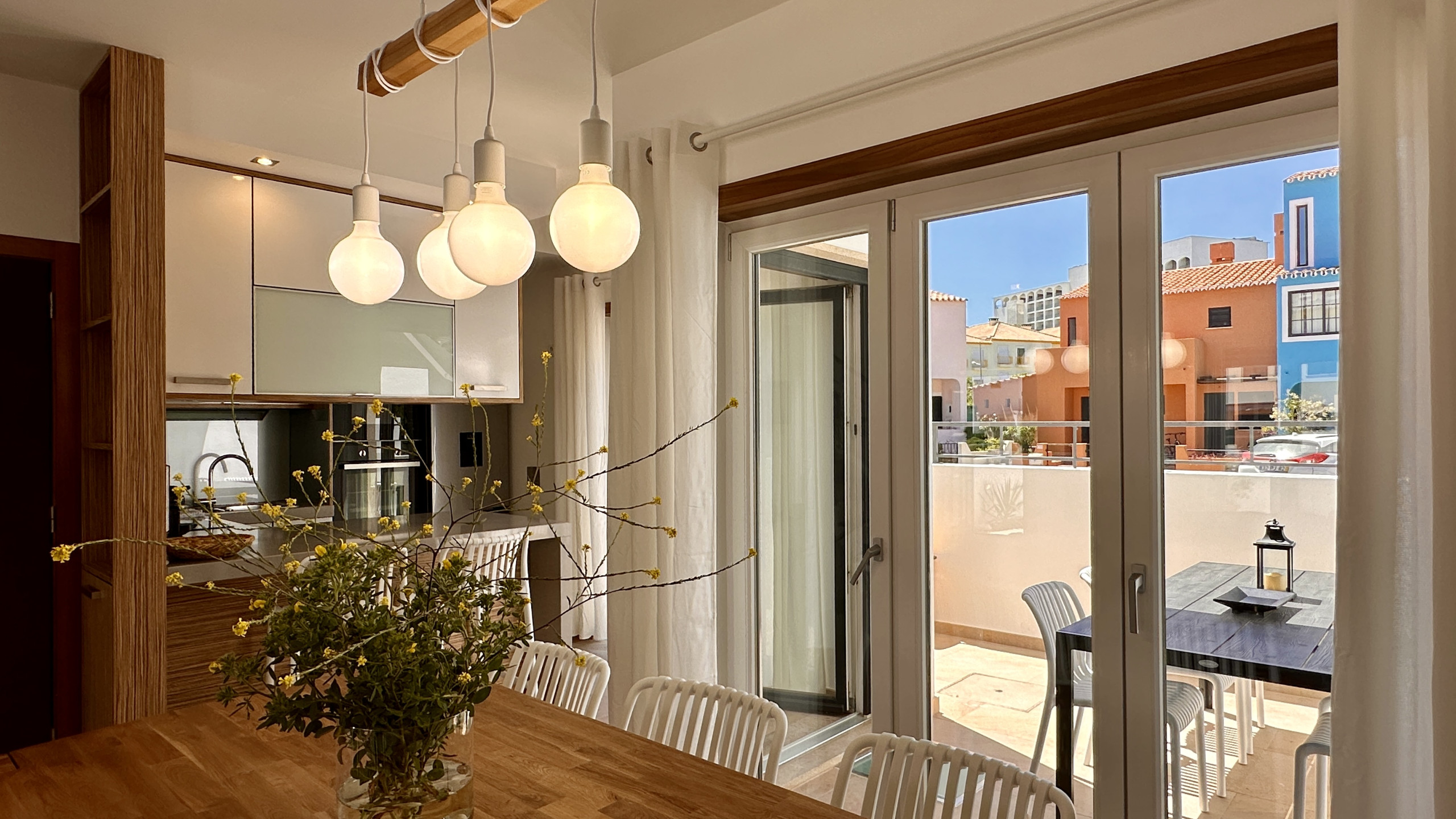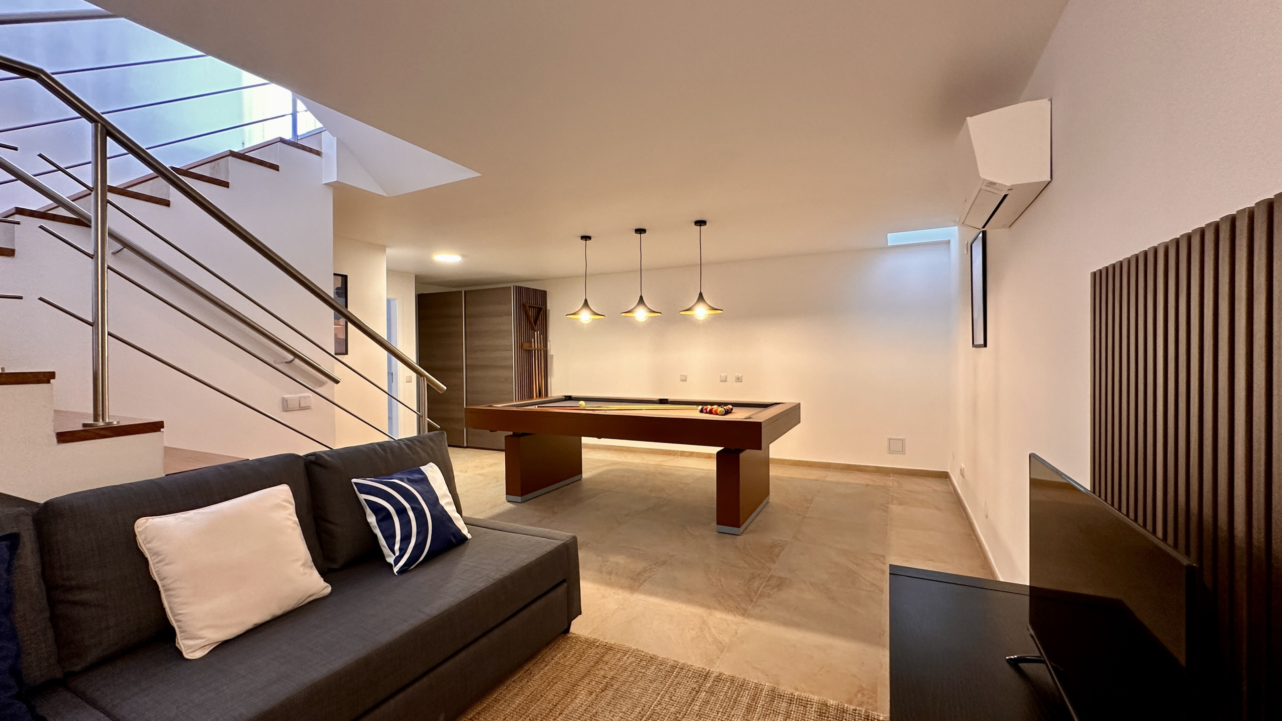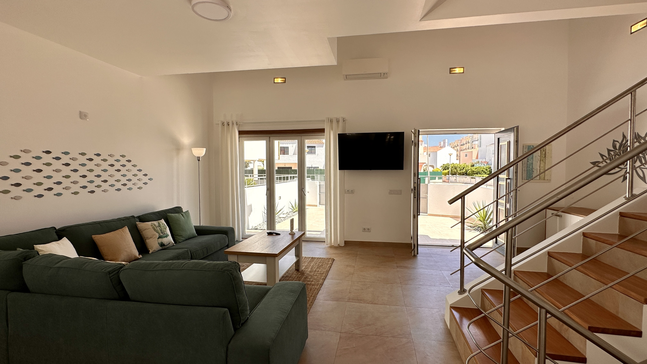 • Sala de estar espaçosa e luminosa, com zona de refeições e acesso direto à piscina
