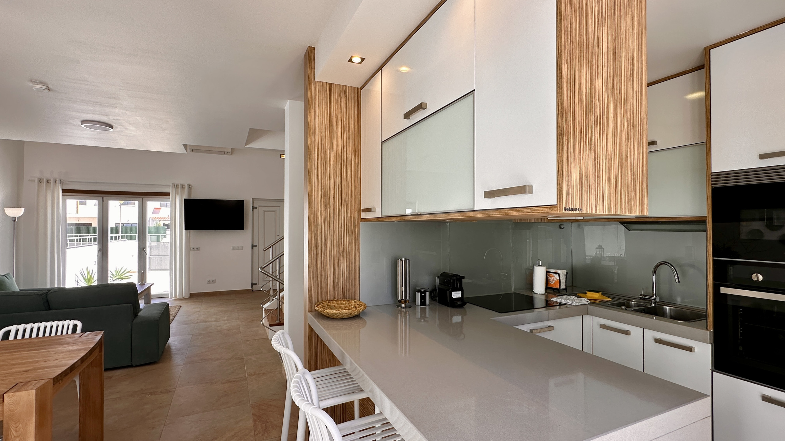 • Cozinha totalmente equipada: frigorífico, forno, fogão, micro-ondas, máquina de café, máquina de lavar loiça, máquina de lavar roupa e todos os utensílios essenciais