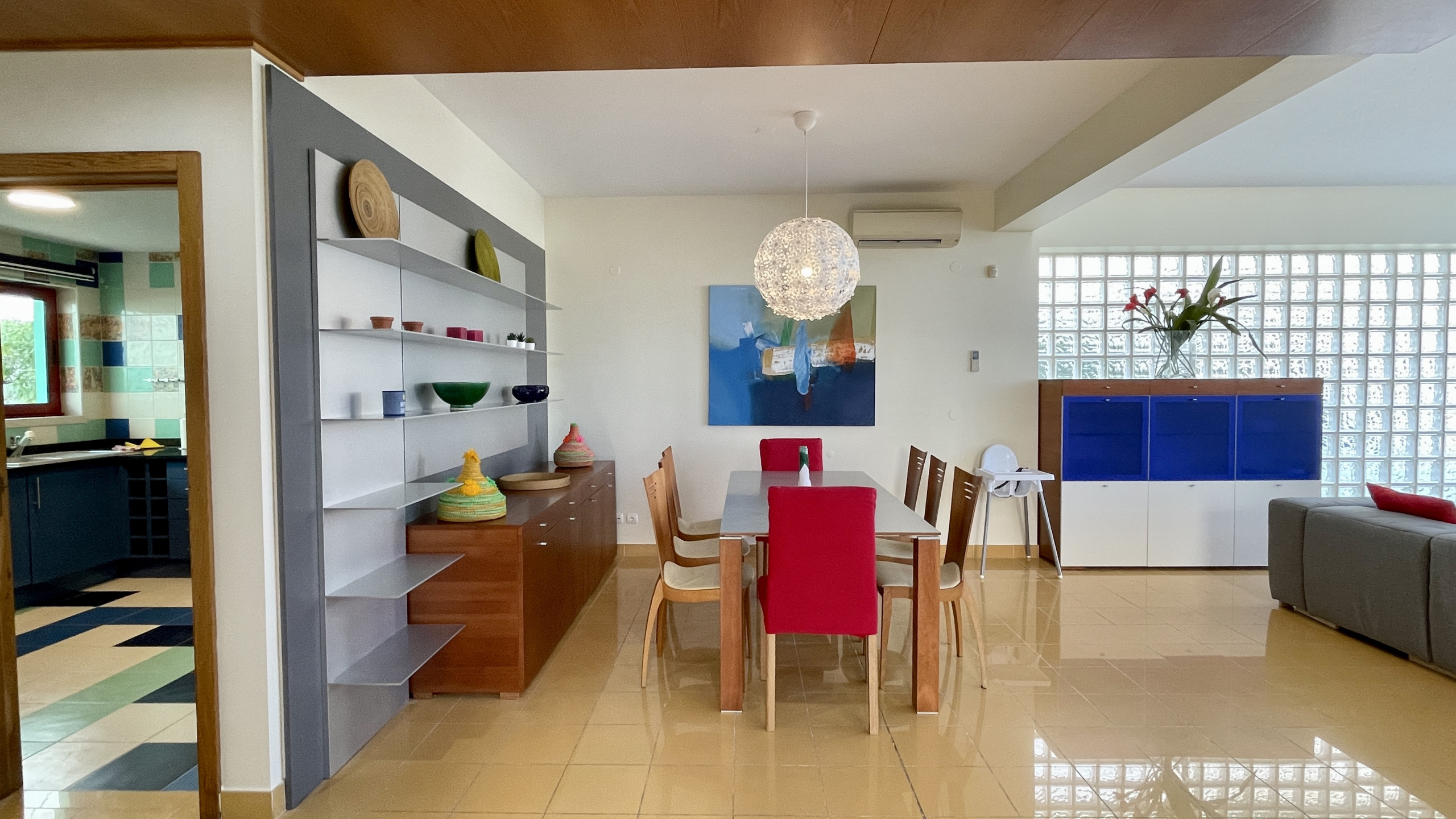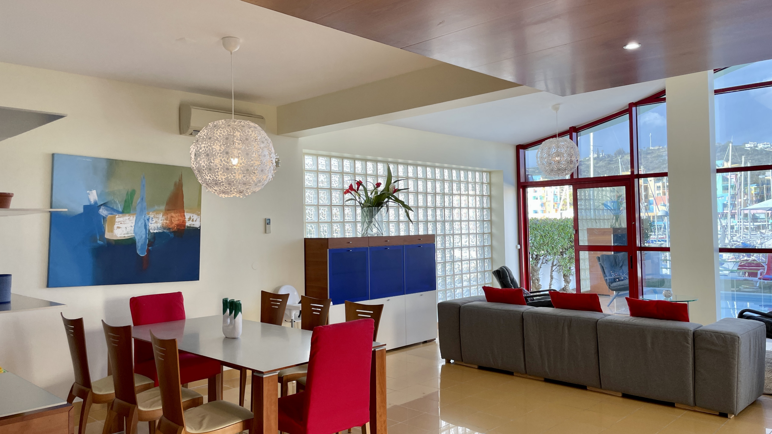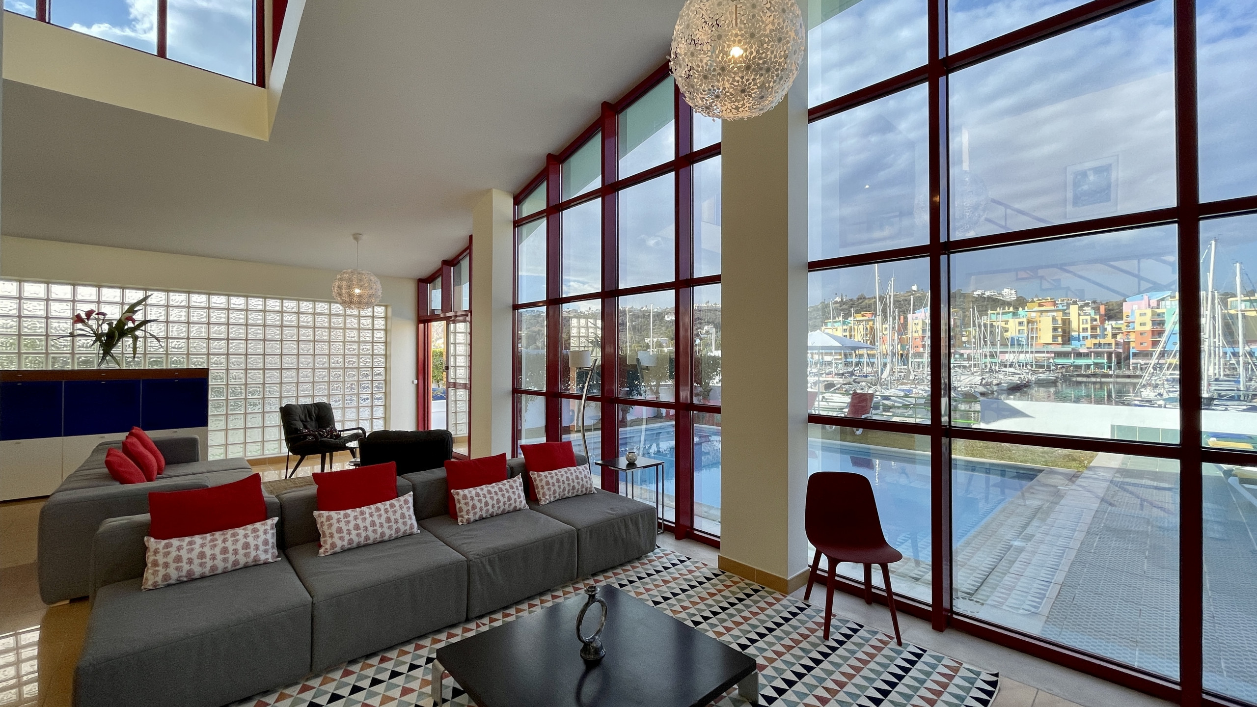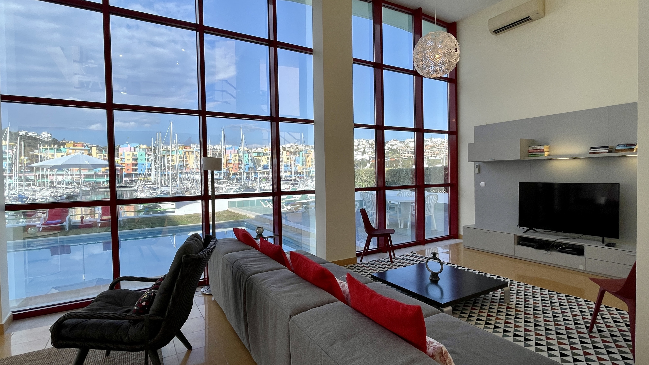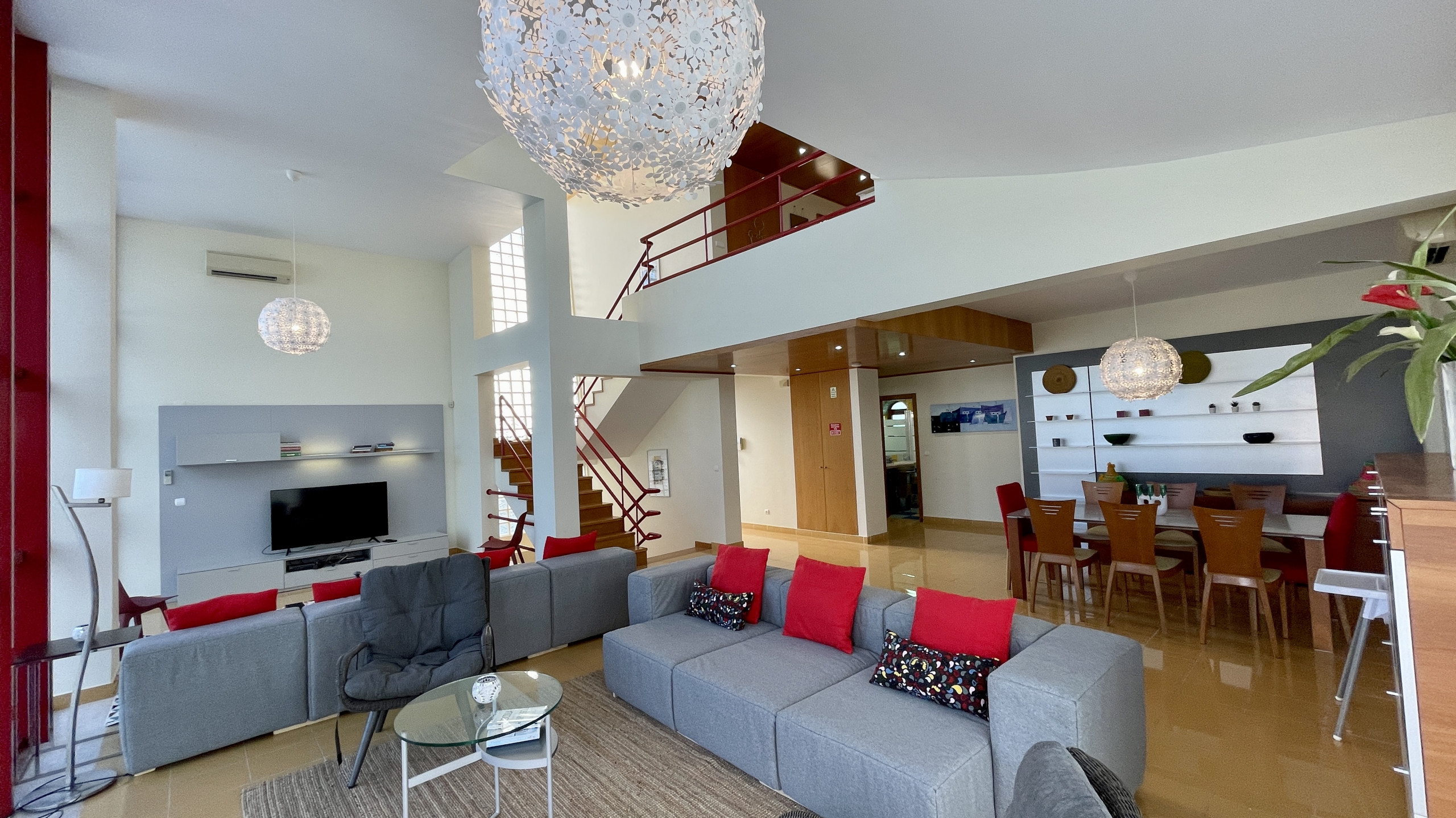 • Sala de estar espaçosa e luminosa com zona de refeições e acesso direto à piscina