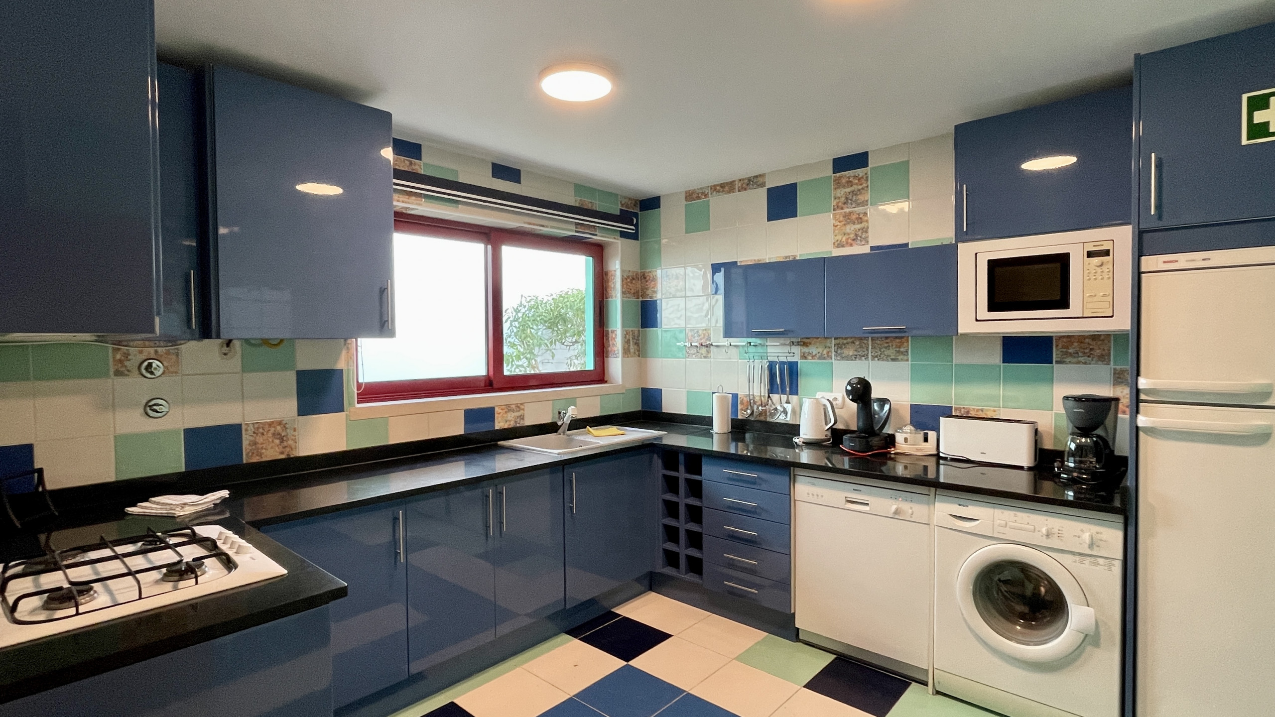 • Cozinha totalmente equipada: frigorífico, forno, fogão, micro-ondas, máquina de café, máquina de lavar loiça, máquina de lavar roupa e todos os utensílios essenciais