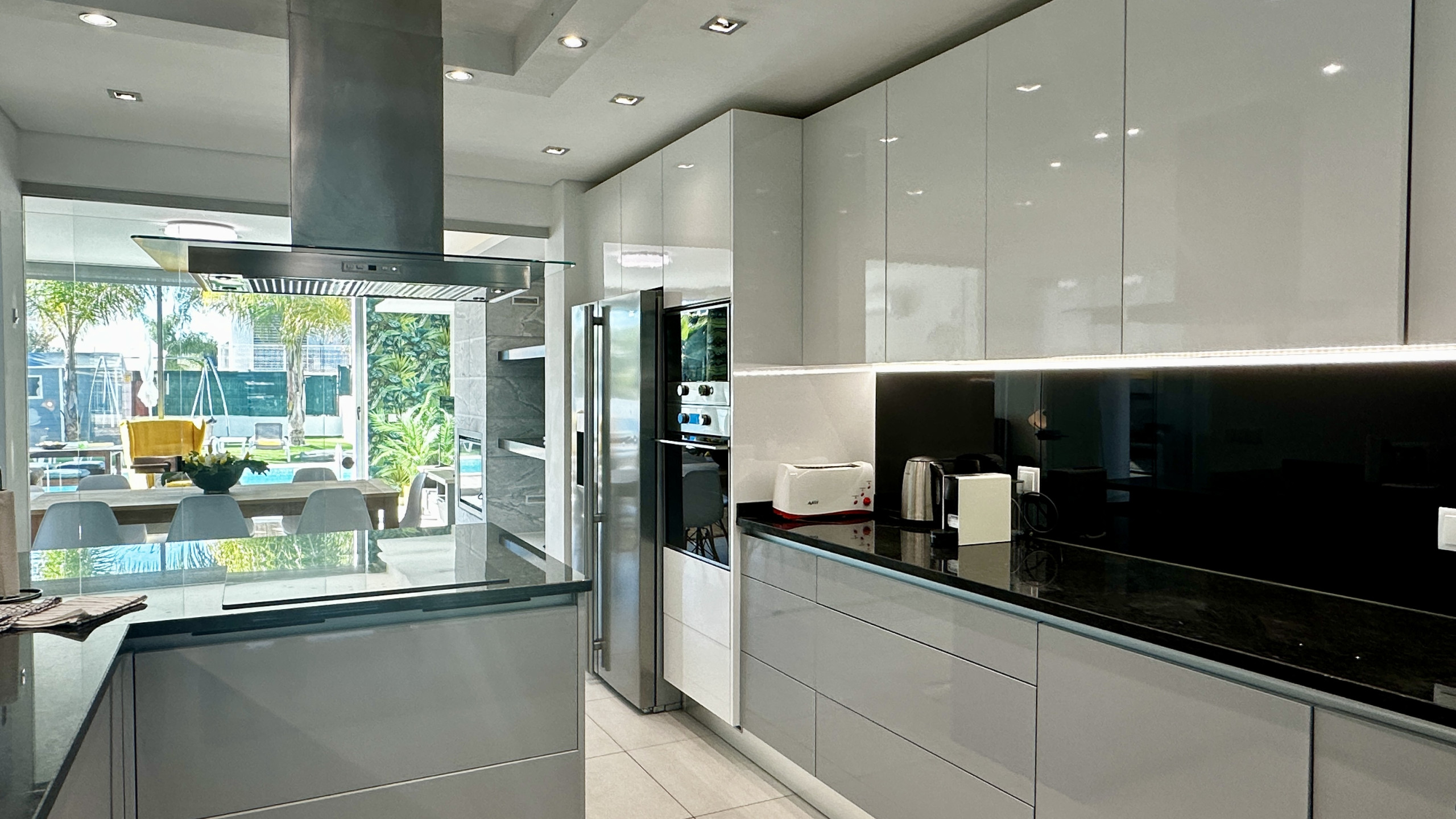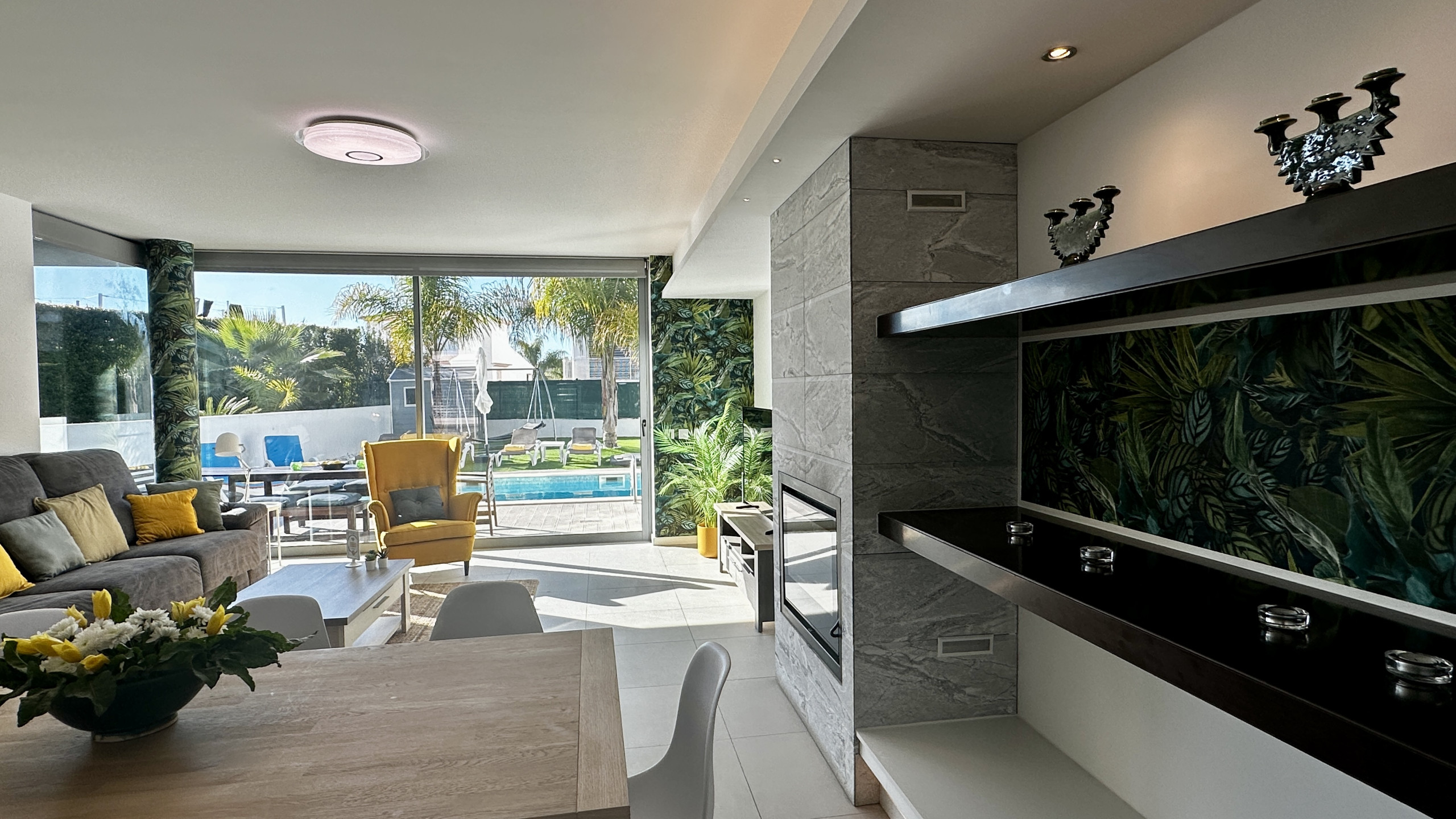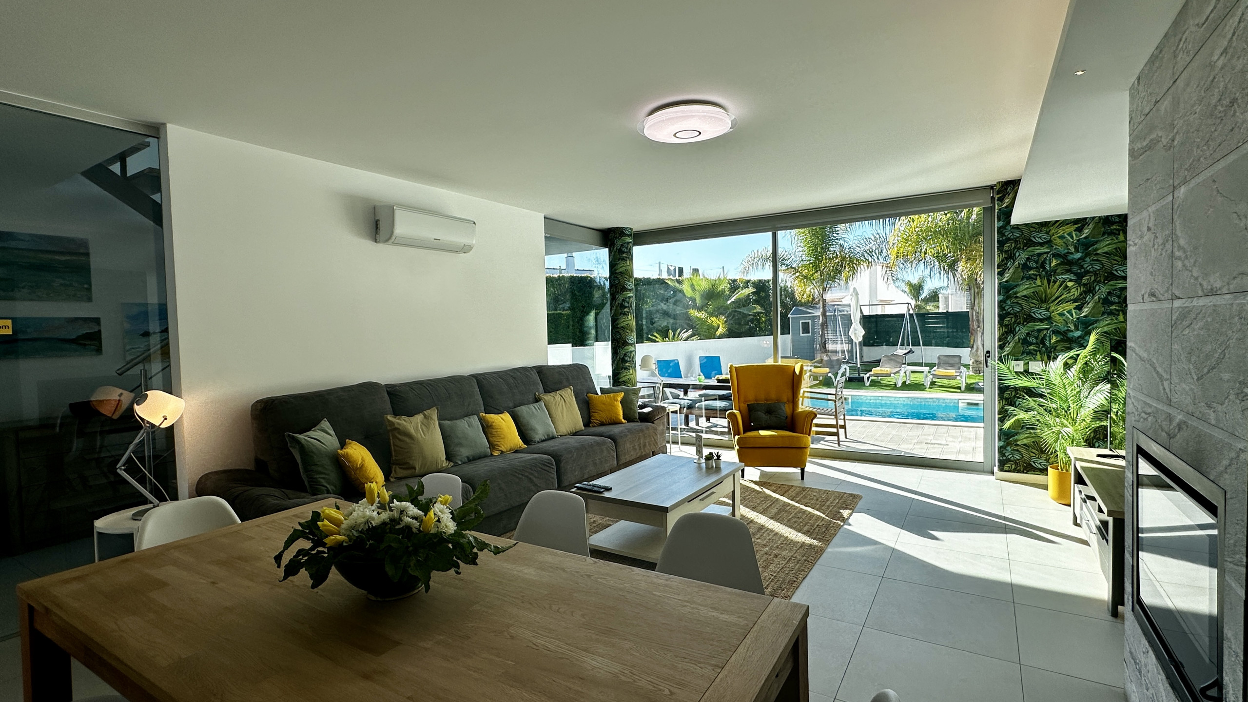 • Sala de estar luminosa e espaçosa, com zona de refeições e acesso direto à piscina
