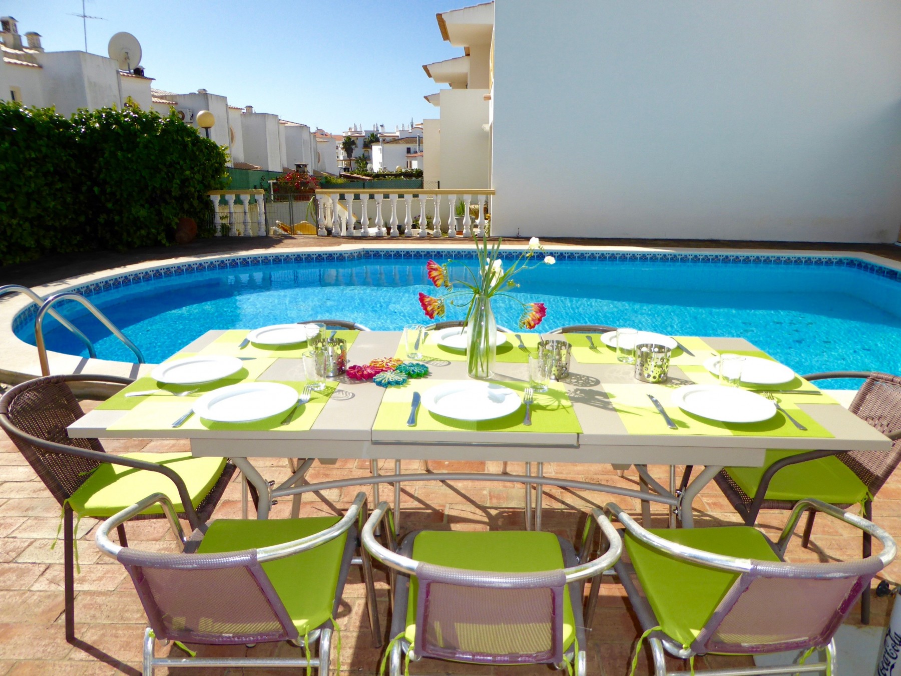 • Sala de estar espaçosa e luminosa, com zona de refeições e acesso direto à piscina